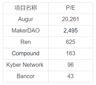 那么,如果按照传统金融的市盈率方式,我们是否能够给予DeFi代币进行估值?先看一下。