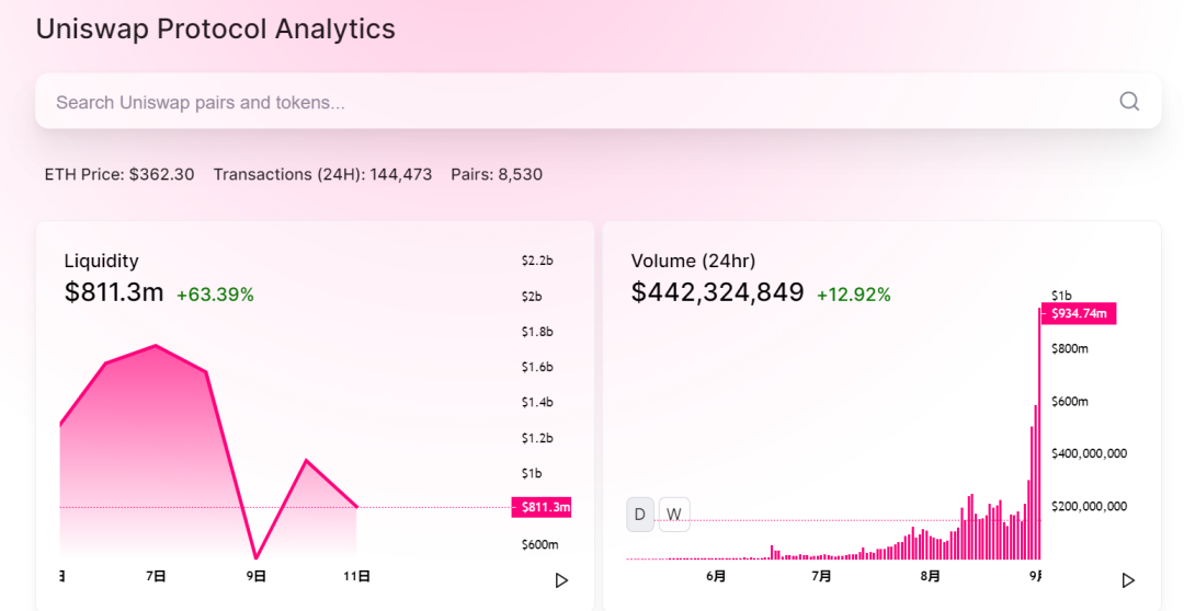 SushiSwap的新控制方继续推动流动池迁移方案。9日晚上十点,SushiSwap正式激活迁移,并于10日早晨3点左右完成迁移,成功迁移走Uniswap近10亿美元的流动性,而后者流动性骤减约70%。