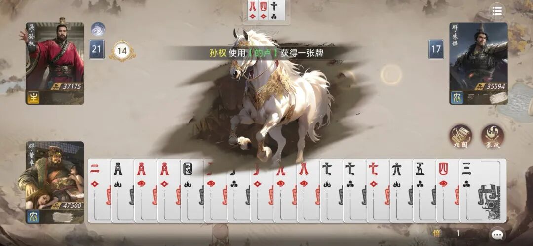 每回合出牌决策的行为简单直观,而每位英雄都拥有符合人物设定的技能,如郭嘉“遗计”可复制牌型、的卢“逢凶化吉”可获得一张牌瞬间提升牌型强度。