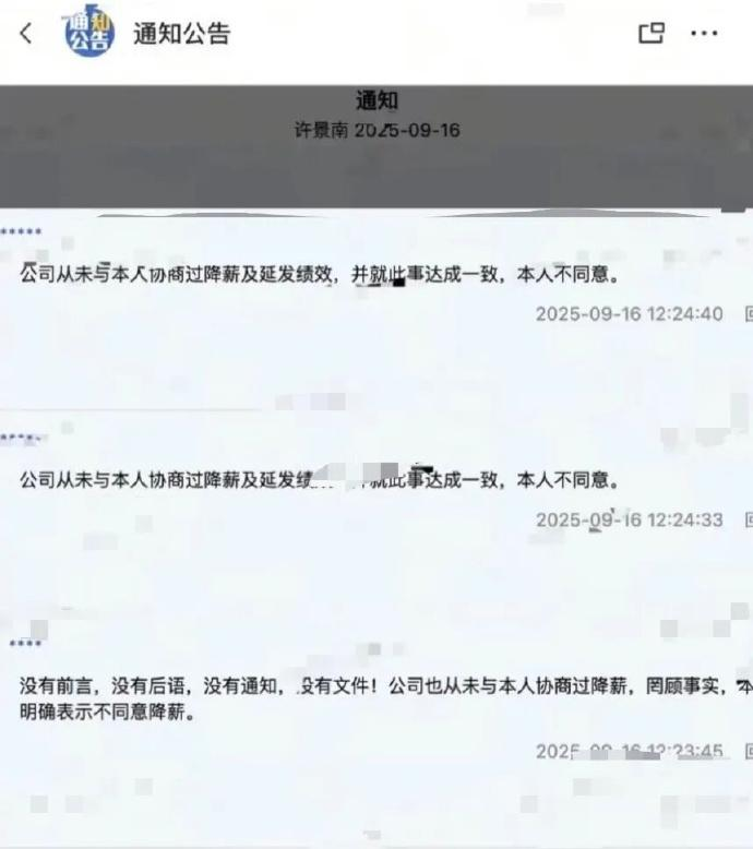 许景南表示,绩效奖金制度仍将保留,整体降薪幅度不到10%,相关决议内容已向工会和公安备案。
