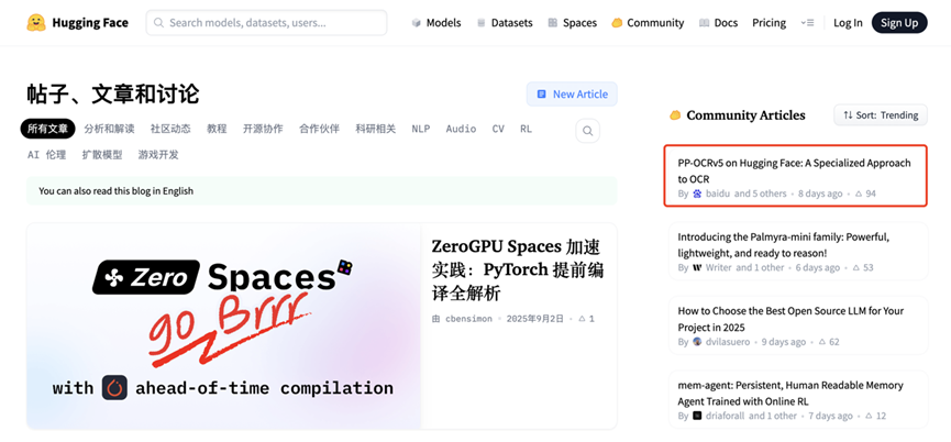 就在上周过去的9月10日,一篇名为PP-OCRv5技术博客文章登顶Hugging Face博客热度榜第一,这个模型技术以仅为0.07B的极致轻量化模型体积做到整体识别精度达到SOTA水平。在多项OCR场景测试中,PP-OCRv5的表现甚至超越GPT-4o、Qwen2.5-VL-72B等通用视觉大模型。