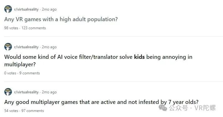 不少用户吐槽VR社交平台里到处都是小朋友(图源:Reddit)