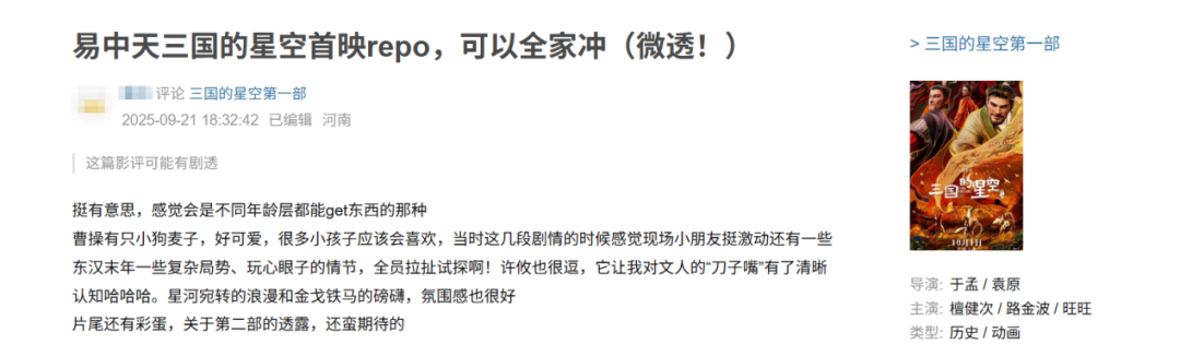 十一假期,很多朋友都会把“看大片”排到日程里。而今年十一档刚好有一部三国题材的重磅作品《三国的星空第一部》,与《率土之滨》开展了堪称“天作之合”的深度合作,让《率土》借助十一档热门话题,又成就了一次精彩的联动。