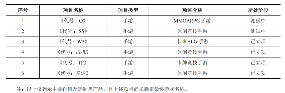 据悉,目前冰川网络有6款新品在研。其中,MMORPG手游《代号:Q》以及休闲竞技手游《代号:SS》已经处于测试阶段。其余4款产品均处于立项阶段,《代号:W2》与《代号:TF》均是冰川网络较为擅长的卡牌游戏类型。