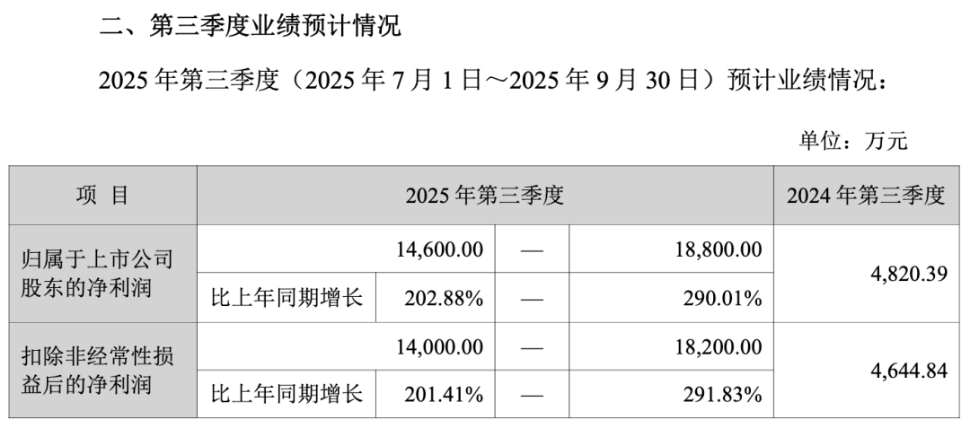 仅第三季度,该公司净利润预计达1.46亿元至1.88亿元,同比增幅高达202.88%至290.01%。