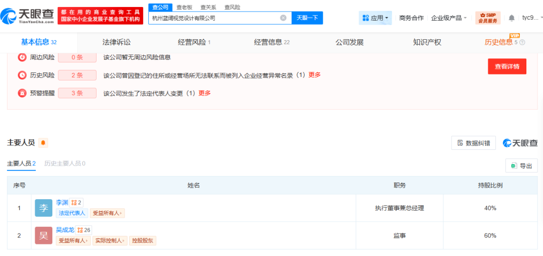 而文渊,原名为李渊。天眼查显示,其曾与花西子另一位创始人吴成龙,于2016年共同成立了杭州蓝阔视觉设计有限公司,目前该公司已注销。文渊曾深度参与花西子爆款雕花口红的妆造,以及整体品牌视觉体系的搭建。