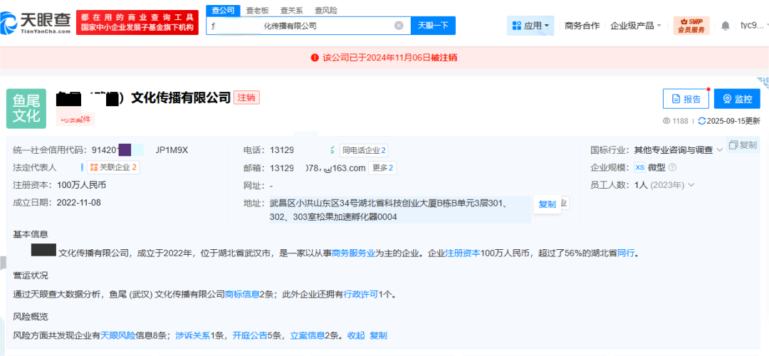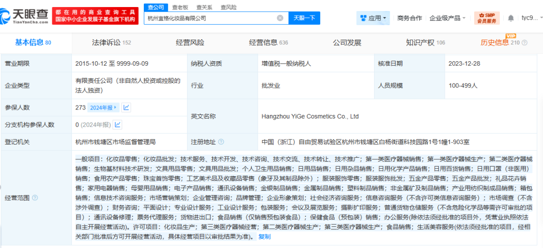 天眼查显示,被告人羊雨控制的公司主要从事商务服务业,且已于2024年11月6日注销;而宜格公司主要从事化妆品零售与批发等业务。