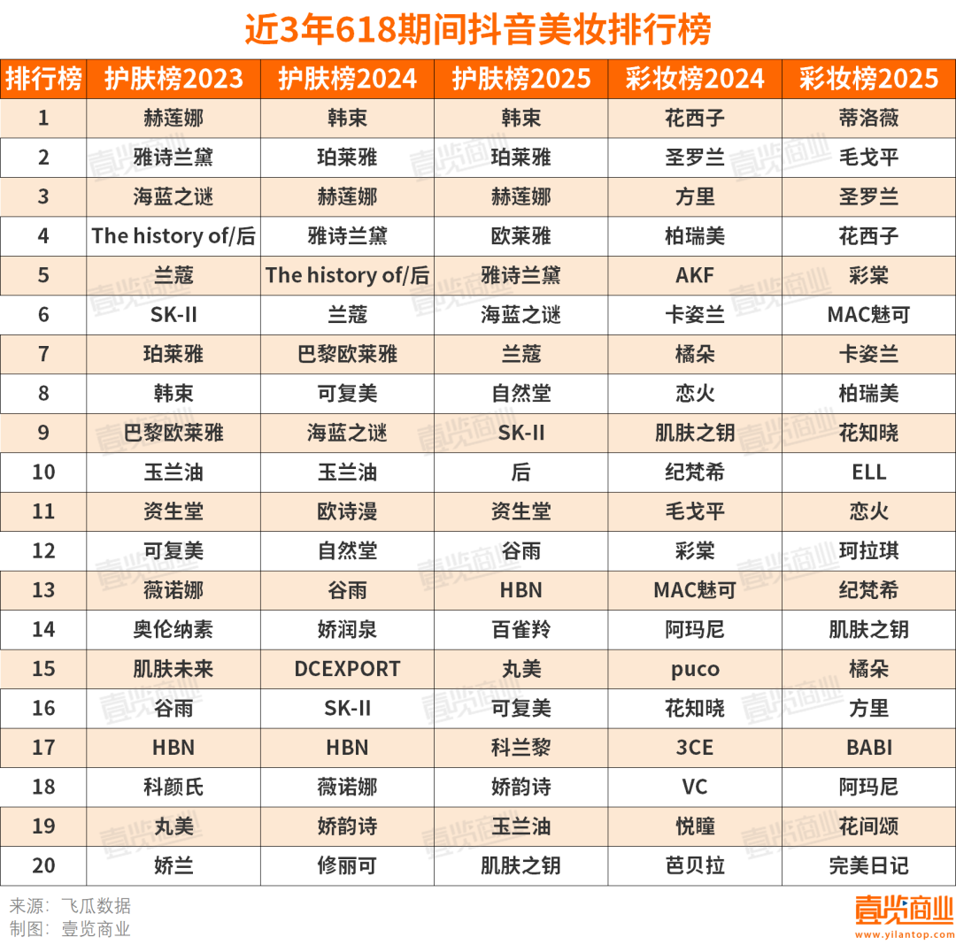 另据飞瓜数据,而在今年的“6·18”大促中,花西子也从抖音彩妆排行榜TOP10去年的第1名降至第4名。