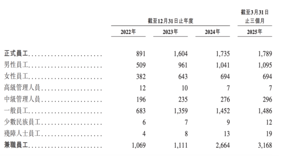 招股书显示,截至2025年3月末,巴奴火锅共有员工11081人,其中全职员工仅1789名,占比16.14%;兼职员工3168人、外包员工6124人,两类非正式员工合计占比高达83.86%。
