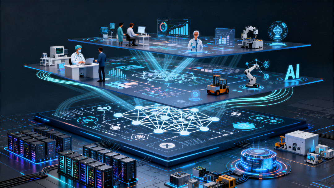 从基础层的算力设施,到技术层的大模型,再到应用层的行业落地,打通AI产业链的每一个关键环节。
