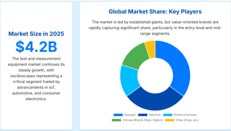 2025年全球示波器市场规模预计在20-35亿美元之间,未来年均增速超过8%。