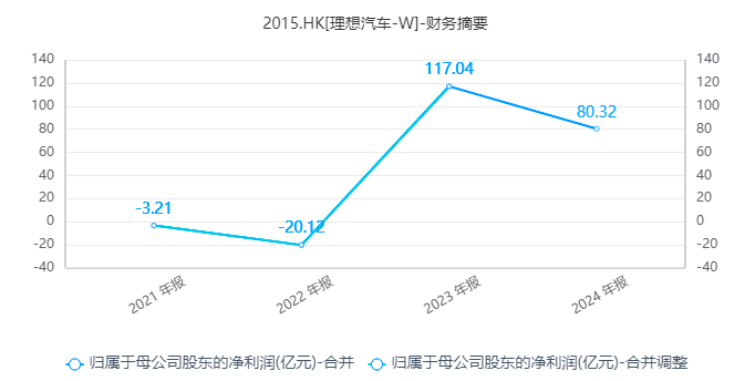 在利润方面,2022年,理想归母净利润从-3.21亿元下降至-20.12亿元,亏损扩大了525.97%。2023年,理想汽车实现扭亏为盈,归母净利润达117.04亿元。但2024年,理想汽车没能保持住增长势头,归母净利润下滑至80.32亿元,同比下降31.37%。