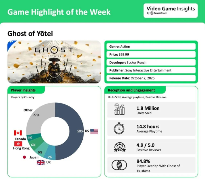 据Video Game Insights数据推算,游戏发售五天销量便突破了180万份。作为一个单平台且成本为6000万美金的项目(同为索尼第一方的《地平线2》成本约2.12亿美元),也算在商业层面展示了什么是“花小钱办大事”。