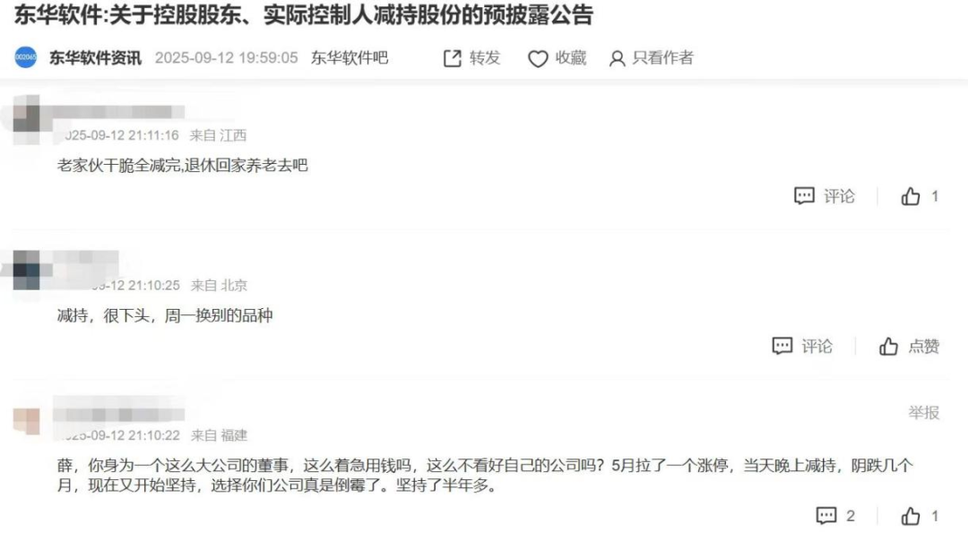 10月16日,东华软件发布公告称,公司董事兼总经理吕波由于个人资金需求,计划自减持公告披露之日起15个交易日后的3个月内(即2025年11月10日至2026年2月9日)通过集中竞价方式减持其所持公司股份不超过151.92万股,即不超过公司总股本的0.05%。减持原因为个人资金需求。
