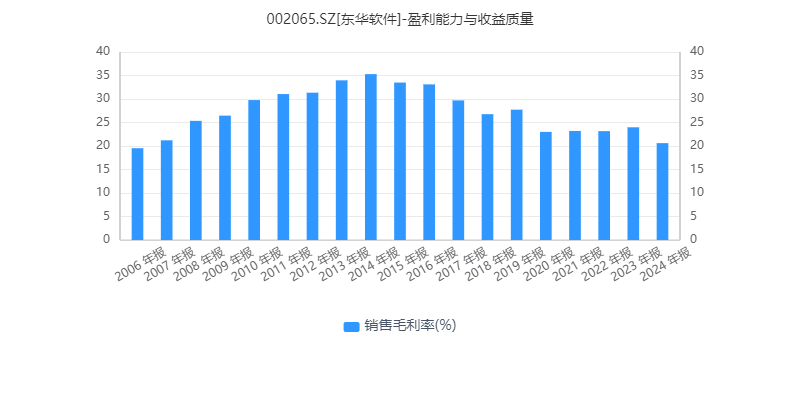 公司的销售毛利率比净利润早一年达到顶点,在2014年毛利率达35.29%。此后震荡下行,至2024年,销售毛利率仅剩下20.61%。