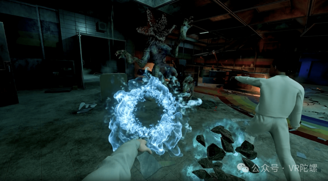 《怪奇物语:催化剂》支持语音聊天配合,但其核心玩法确实显露年代感。作为街机式波次射击游戏,玩家将击溃恶魔蝙蝠、恶魔犬、恶魔巨兽等敌人;消灭最终威胁时确实令人振奋。除了扣动扳机磁吸选定物体投掷敌军外,另一只手还可运用念力击退近身敌人。全程仅需25分钟即可通关。