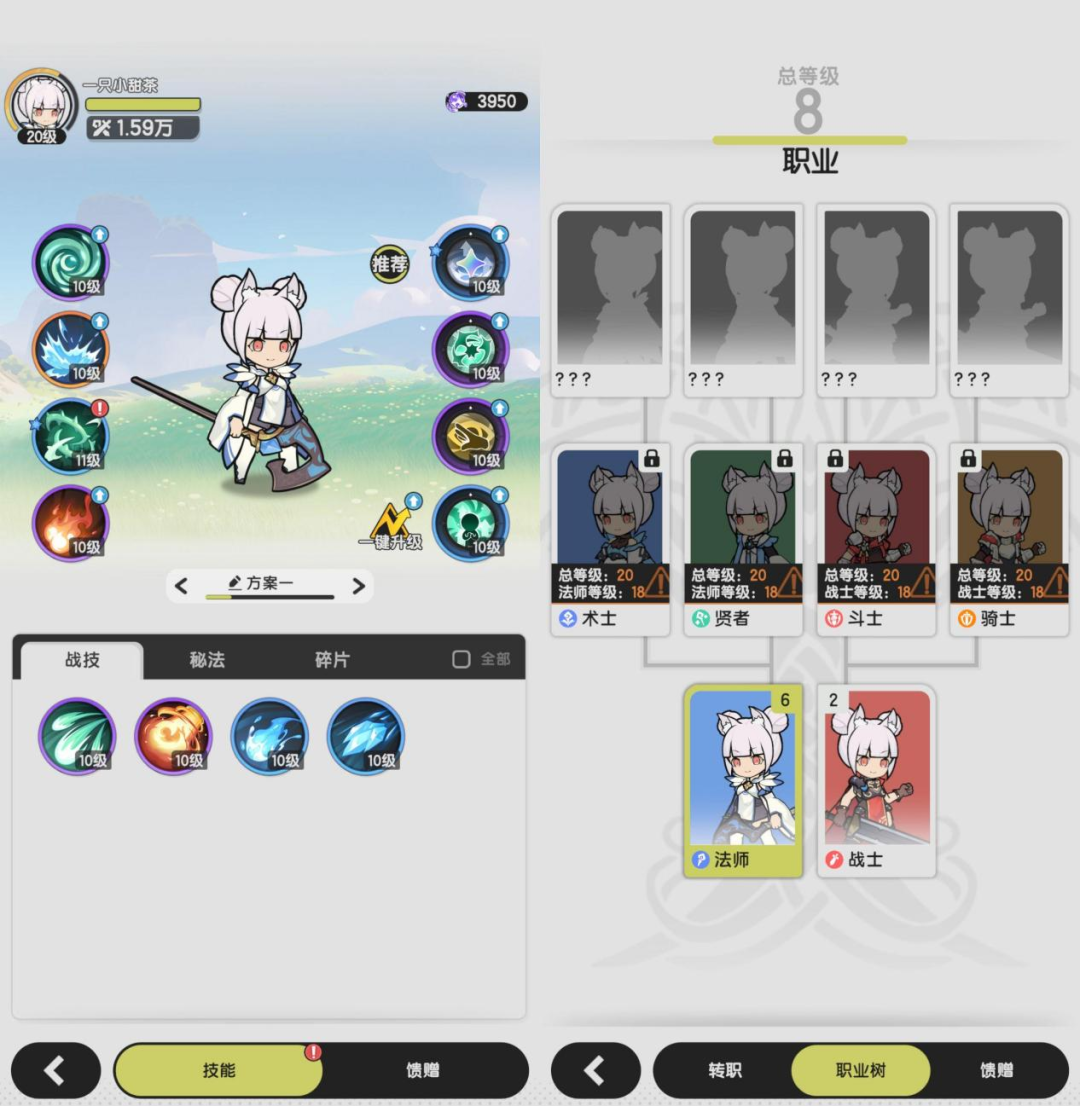 但它又不是一个纯粹的“收菜”游戏。在放置的框架下,它通过技能BD(技能搭配)系统,保证了中后期有足够的策略空间。