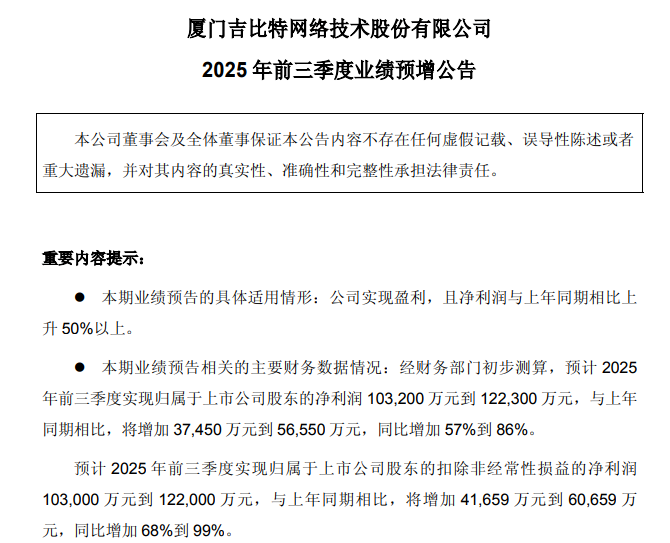 而就在10月14日,吉比特的一份业绩预告,则为这款产品的成功提供了最权威的注脚:预计今年前三季度,公司净利润将同比增长57%到86%。公告明确指出,业绩增长的核心动力,就来自于《杖剑传说》等几款新游戏。