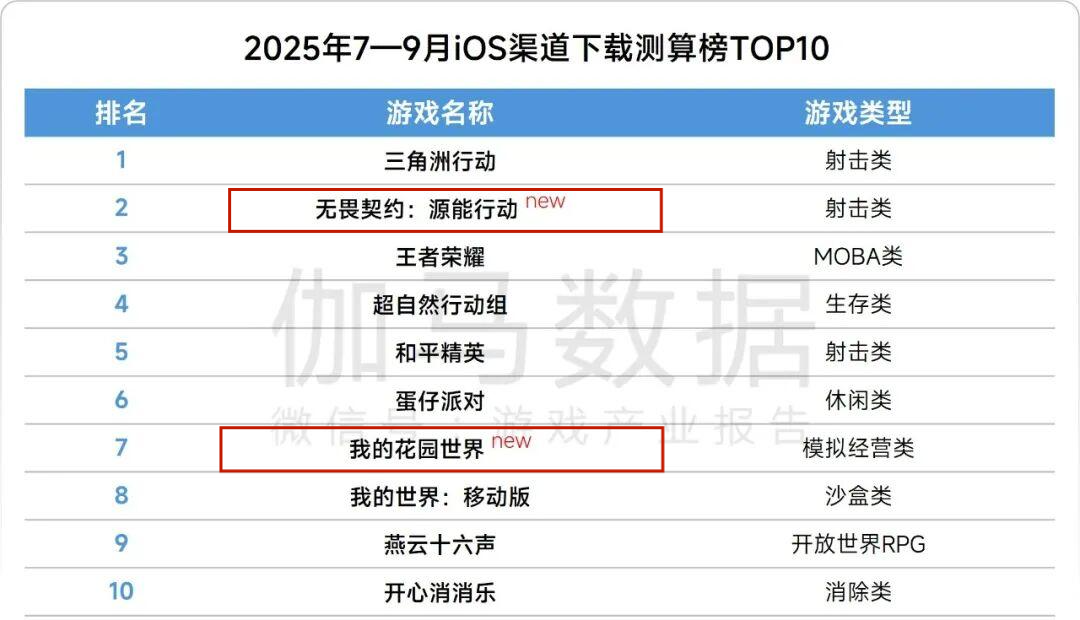 来到iOS渠道下载测算榜,新品与长线产品均有入榜,覆盖了射击、MOBA、生存、休闲、沙盒等多种玩法,反映出用户需求的多元化。