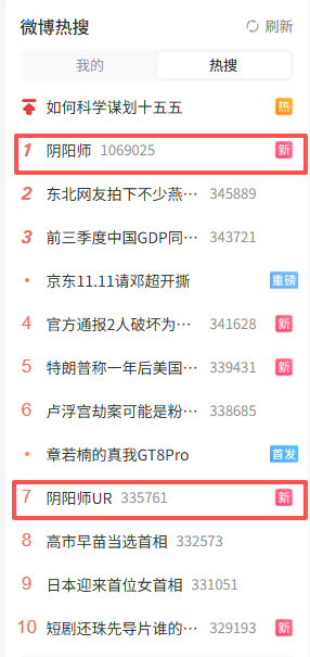 UR妖刀姬推出的消息宣布后,《阴阳师》迅速登上了微博热搜榜一。