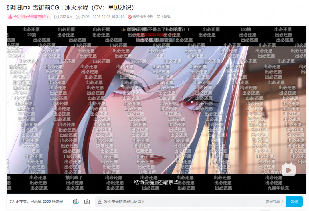 以「源平之争」为主线的新剧情,配合新式神「雪御前」与「平将门」的出色设计,赢得了玩家的广泛好评。高质量的CG与饱满的角色塑造,让弹幕再次被“出必还愿”刷屏。