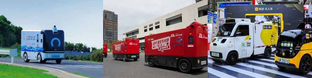 图源菜鸟无人车官方微信公众号、京东物流黑板报官方微信公众号、美团无人车官方微信公众号
