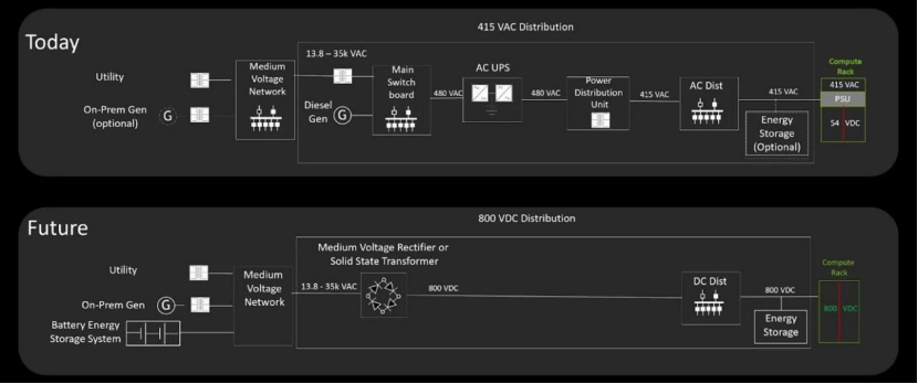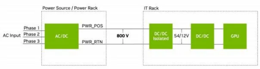 这种跃升使得传统供电系统暴露出致命短板,800VDC架构的推出成为破解困局的关键。