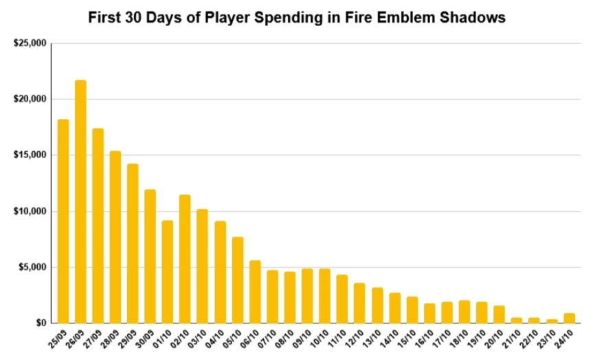 《火焰之纹章:影》首月每日玩家支出表,图源pocketgamer.biz