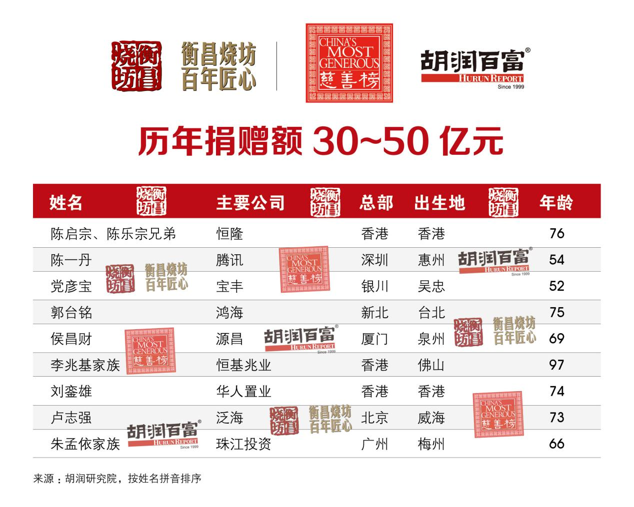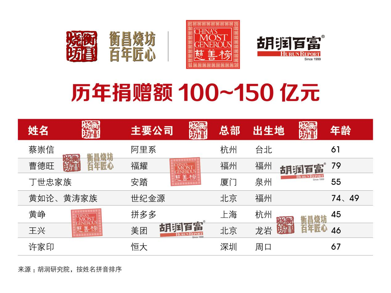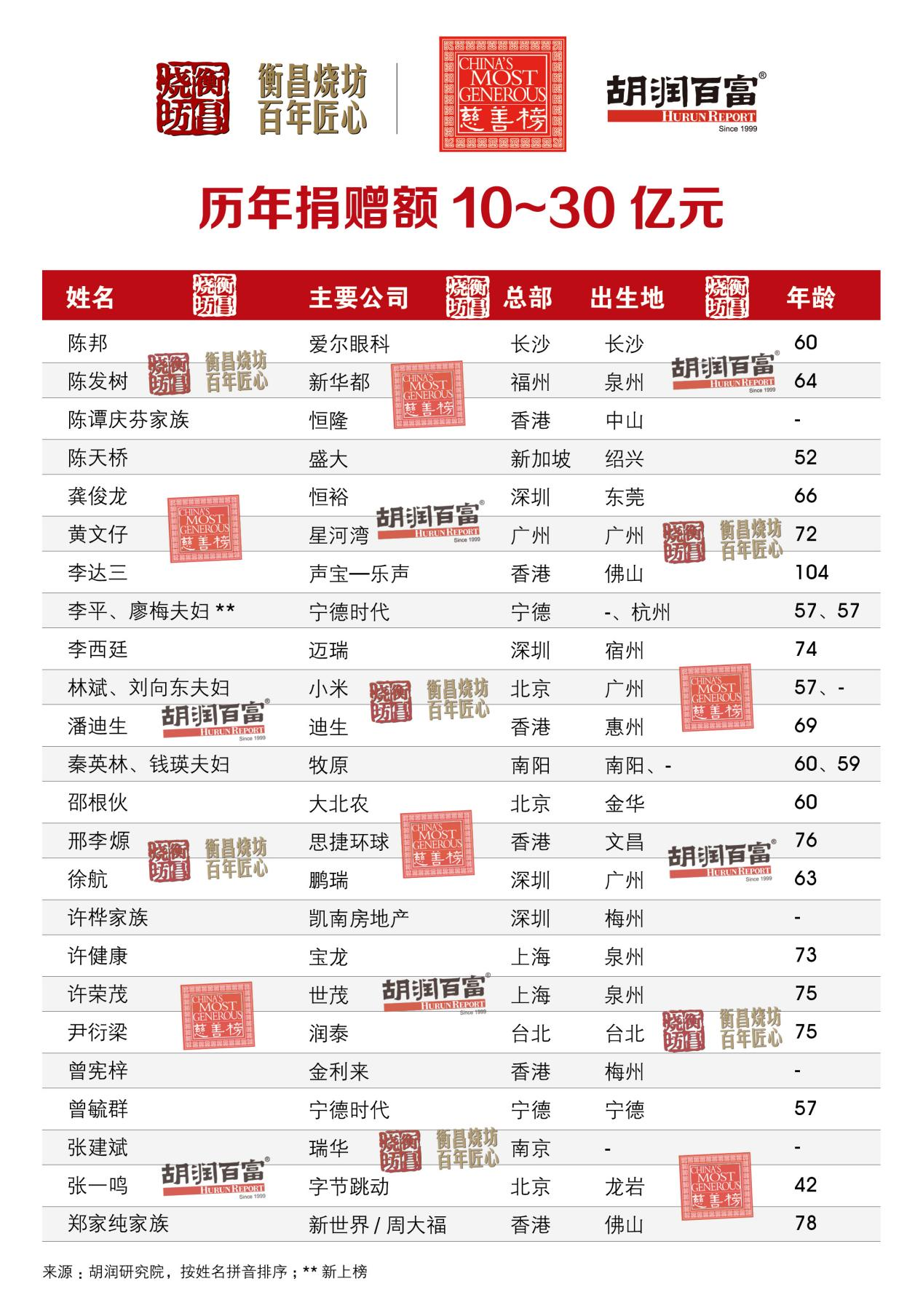 11月4日,胡润研究院发布《2025衡昌烧坊·胡润慈善榜》(HENGCHANG SHAOFANG · Hurun China Philanthropy List 2025)。统计区间为:2024年9月1日至2025年8月31日期间的现金和股权捐赠,以及有法律效力的承诺捐赠都统计在内。2025年8月31日至榜单发布日期间的1亿元以上大额捐赠,也计入本次统计。今年是胡润研究院连续第二十二次发布“胡润慈善榜”。