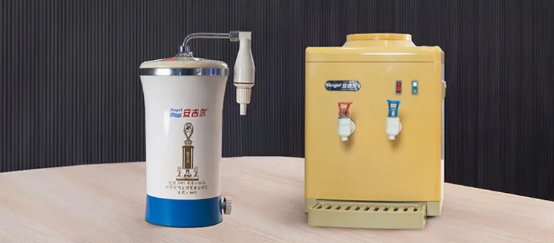 左为安吉尔第一台净水器,右为安吉尔第一台饮水机