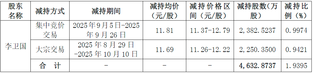值得注意的是,自2024年起至今,李卫国减持了约8685.87万股公司股份,累计套现金额高达11.96亿元。