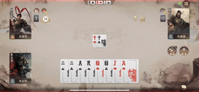 「加牌」,如吕布在每次玩家被压牌后可积累一点怒气,达到六点怒气后将获取此前场上出现的所有「J」「Q」「K」,每局限定发动一次技能,直接大概率增加了凑成炸弹牌型的可能性。
