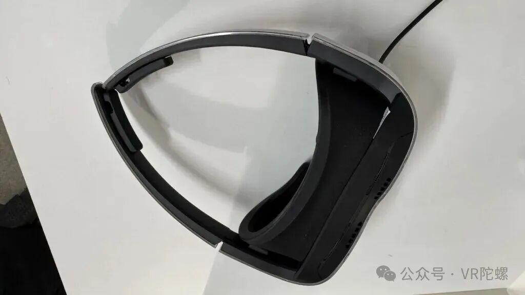 首先是体验佩戴感。正如其“VR眼镜”的定位,基本结构并非后脑勺全覆盖式固定,而是采用类似眼镜的耳挂式设计,其镜腿活动部位采用极具柔韧性的结构设计,戴上之后的舒适度和贴合度都相当不错。