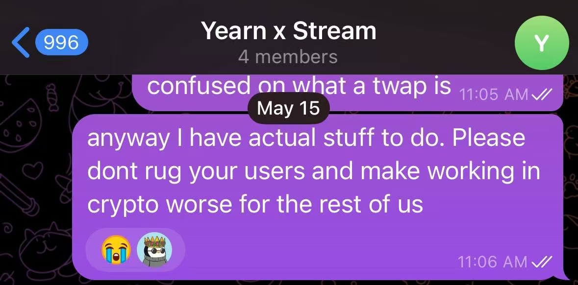 曾经 Yearn Finance 和 Stream Finance 的对话