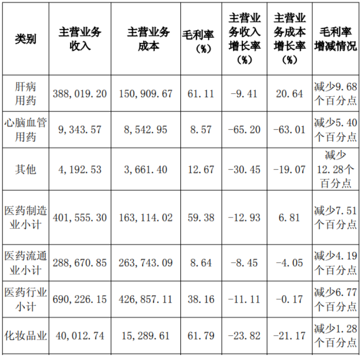 不难看出,片仔癀三大业务板块营收均出现了同比缩水的情形,尤其是化妆品业务更是出现了接近三成的同比下滑,这与该业务此前的高速增长形成了鲜明对比。与此同时,片仔癀三大业务板块毛利率均有所下降,这也导致报告期内公司净利润降幅远高于同期营收降幅。