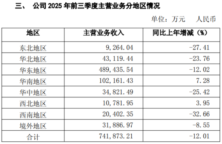 有分析认为,片仔癀零售价格的不断上涨势必会“劝退”部分真正的消费者。此前有研究数据表明,片仔癀的使用人数局限在25万以内,且集中在以福建为主的华东地区。因此,本就过窄的用户群体很难再承受客户流失的压力。财报数据显示,2025年前三季度,片仔癀华东地区销售同比下滑12.02%。