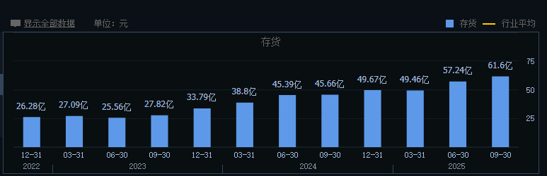 在此背景下,片仔癀此前的“投资属性”已然不复存在,黄牛党的抛售进一步加剧了其炒作链条的全面瓦解。数据显示,截至2022年末,片仔癀存货余额仅为27.09亿元。2023年下半年以来,也就是片仔癀最后一次提价之后,公司存货金额便出现了大幅的攀升。截至2025年9月末,片仔癀存货余额已经达到61.6亿元的历史高位。这也预示着,片仔癀正在为其曾经的“任性提价”买单。