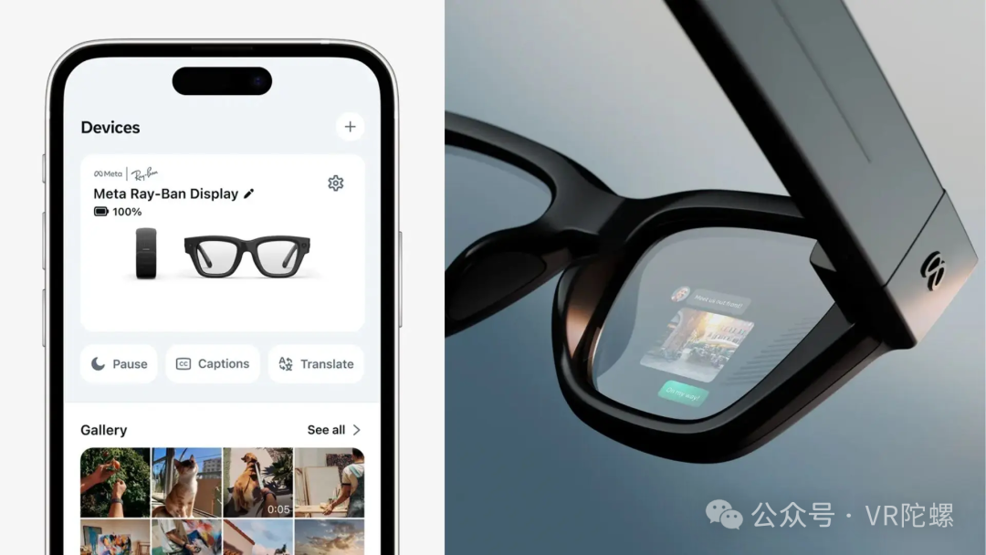 在今年的 Connect 大会上,扎克伯格更是乘胜追击,宣布了 Meta 首款带显示的 AI 眼镜——Meta Ray-Ban Display,在原有的 AI 拍摄眼镜的基础上,不仅增加了光波导显示,还带来了肌电手环的全新交互方式,进一步拓展了应用场景。