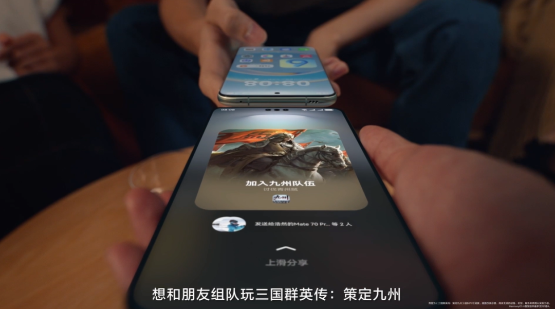 一个很典型的例子是鸿蒙的“碰一碰”。最初这个功能是为了传输文件、视频,但在鸿蒙游戏中,碰一碰带来了更有意思的玩法。