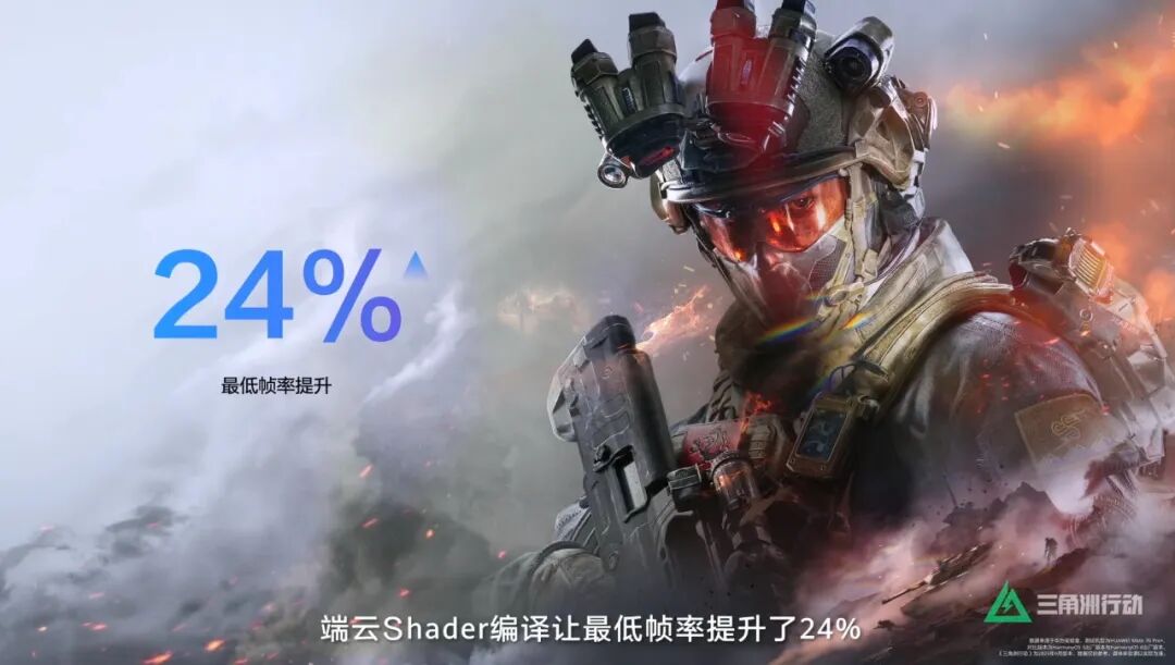 在鸿蒙6的发布会上,《三角洲行动》亮相,分享了通过端云Shader编译,对比上一代鸿蒙,游戏的最低帧率能稳定提升24%。最低帧率提升意味着更稳定、波动更小,这在FPS游戏中至关重要,是丝滑流畅体验的真正基石。