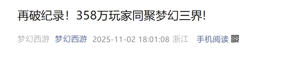 因为从今年7月起,《梦幻西游》的“创新高”就成了每个月的保留节目。从7月的275万、8月的293万、9月的315万再到最近的358万,每当我感叹这游戏的人数增长怎么还这么猛时,它都会狠狠打我脸——这才哪到哪。