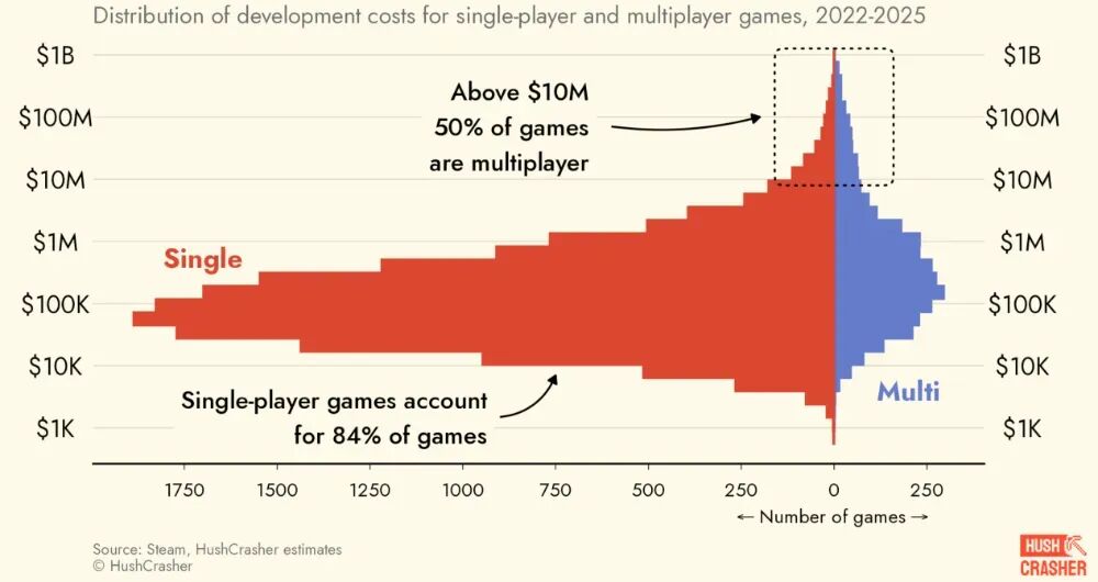 多人模式所需的长线运营、服务器维护和持续内容更新,是推动成本快速上升的主要因素。
