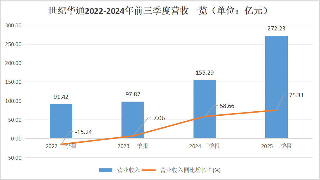 整个前三季度,公司营收达272.23亿元,已超去年全年水平,公司前三季度营收增速为75.31%,创下近年来前三季度营收最高增速。
