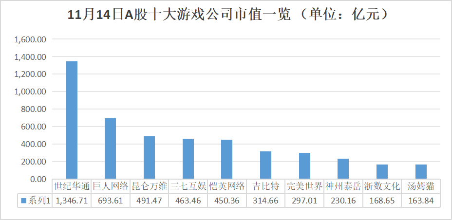 与此同时,公司的价值也被资本市场发掘。年初至11月14日,世纪华通累计上涨达252.72%,最新市值1346.71亿元,超过行业第二巨人网络和行业第三昆仑万维市值之和。