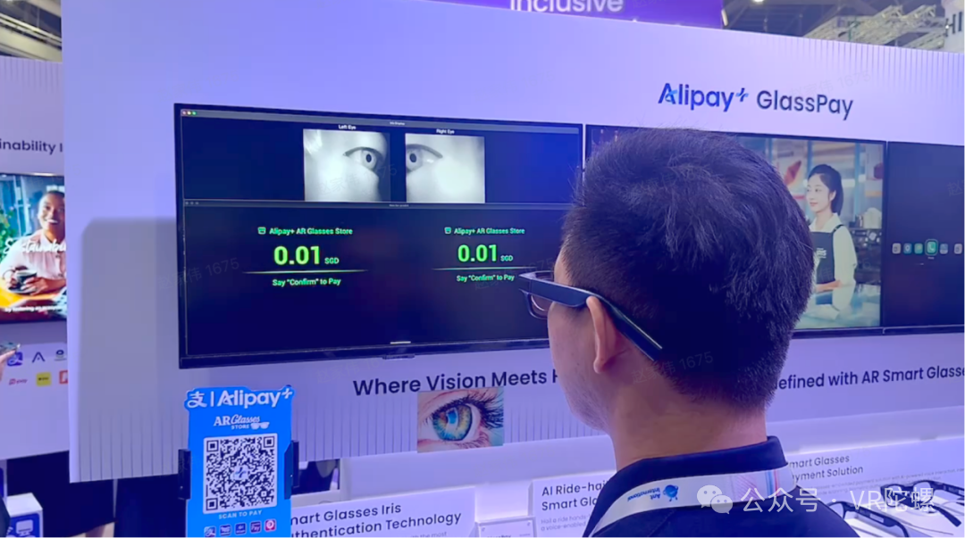 在新加坡金融科技节现场,魅族StarV眼动方案探索版概念机展示了完整的消费闭环:眼镜系统识别到付款码后,用户仅需语音确认金额,即可通过虹膜扫描完成身份核验与支付,全程无需掏出手机或钱包,实现真正的「无感化」消费体验。