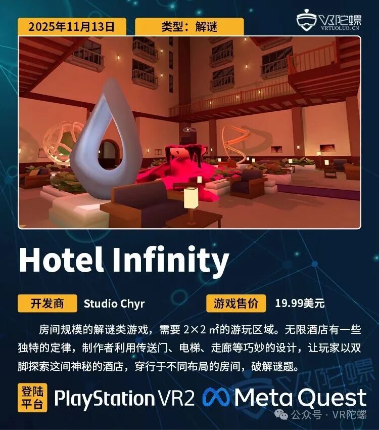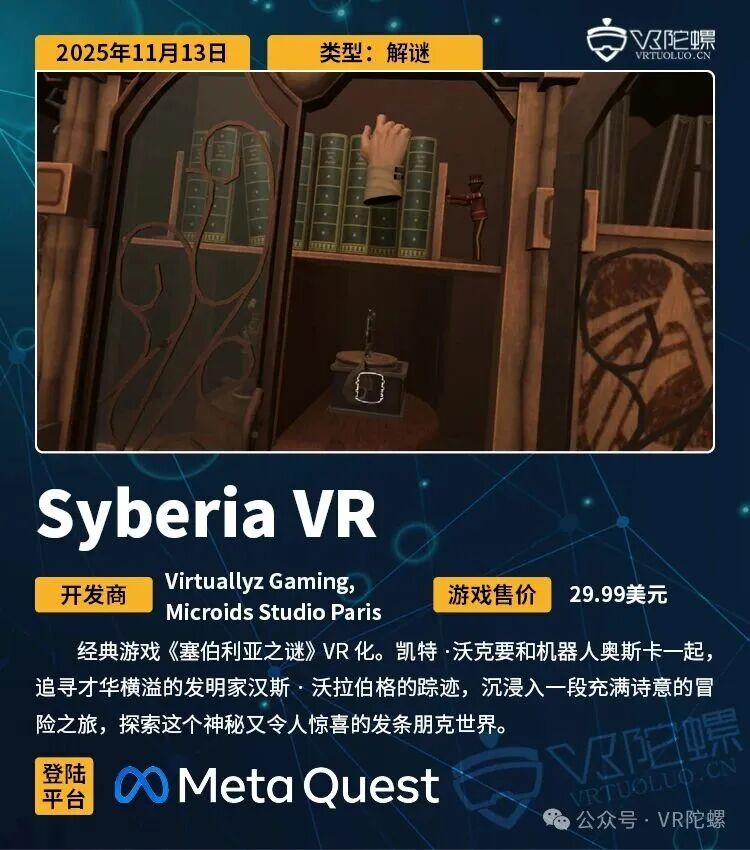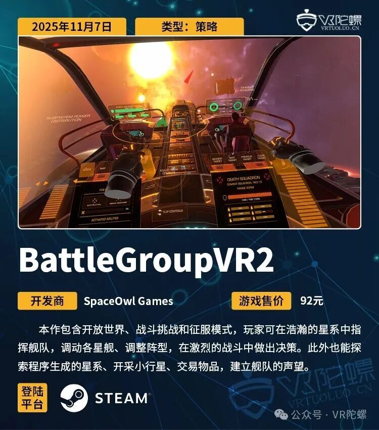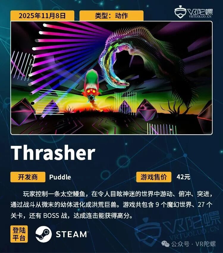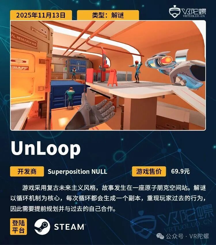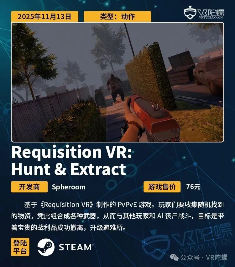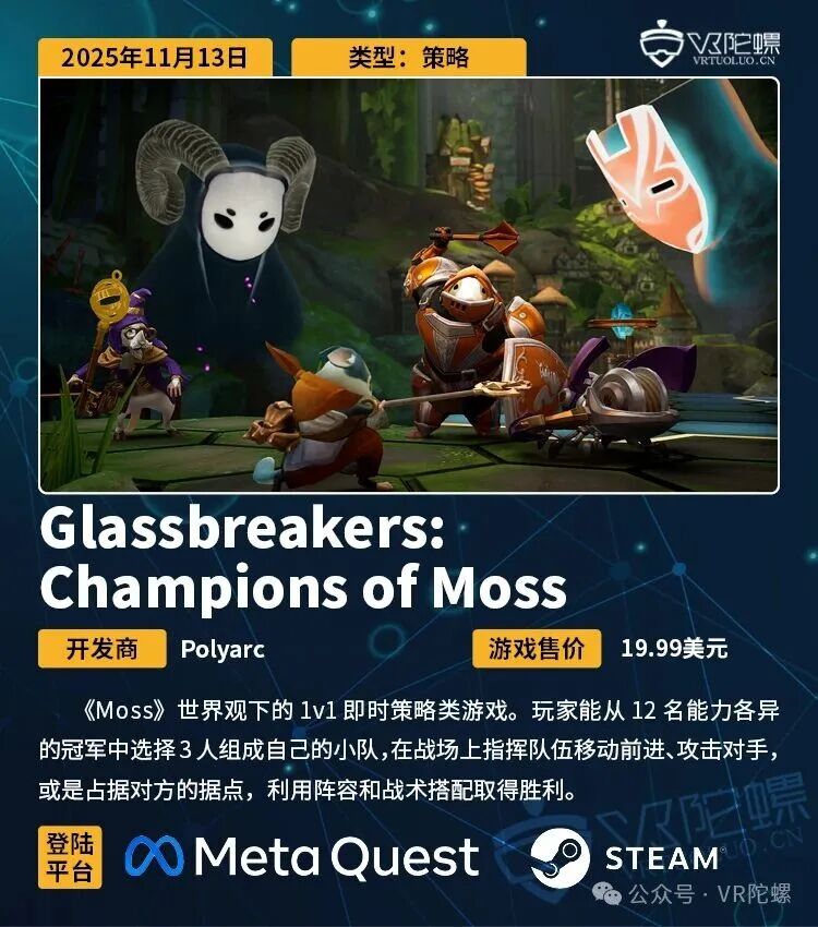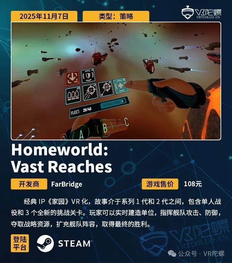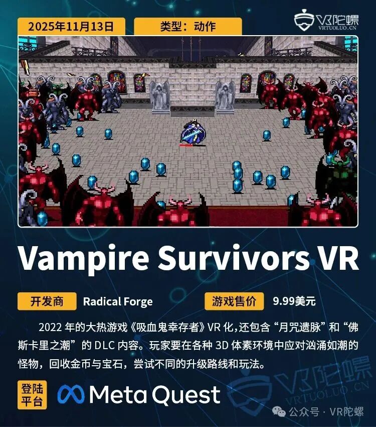 VR游戏周报·第169期,统计11月7日~11月13日期间上线的VR游戏,新作介绍共计16款,后文按照发售时间排序。截至2025年11月13日,各主要VR平台的内容数量如下: