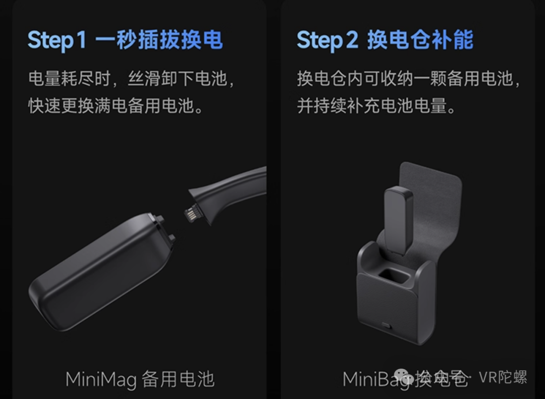 夸克 AI 眼镜将这一可拆卸的镜腿电池命名为 MiniMag 备用电池,其还拥有一个配套的 MiniBag 换电仓。这一超小的 Mini 续航设计,相比于眼镜仓其实更适合轻便出行,支持全天候使用。
