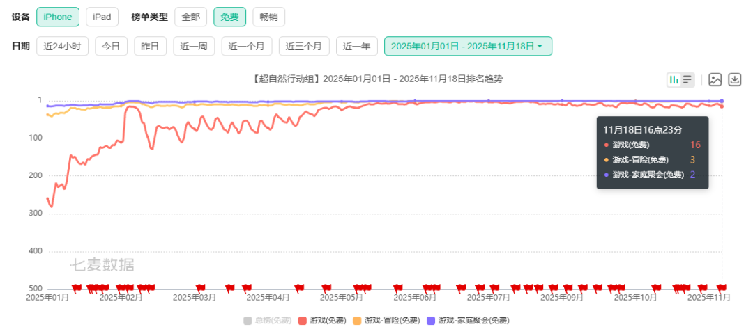 这种轻度、欢乐的体验,不仅降低了上手门槛,也很契合节假日的社交氛围。这次更新的效果显而易见,在竞争激烈的国庆档期,它帮助《蛋仔派对》稳固了在iOS畅销榜头部的位置,并带来了可观的话题热度。