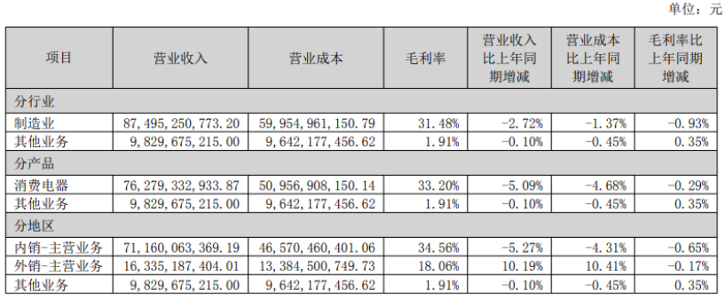 半年报数据显示,格力消费电器板块毛利率为33.20%,同比下滑0.29个百分点;同期,美的智能家居业务毛利率为28.52%,同比下滑0.84个百分点;海尔智家空调产品毛利率为24.26%,较上一年同期(29.14%)下滑近5个百分点。