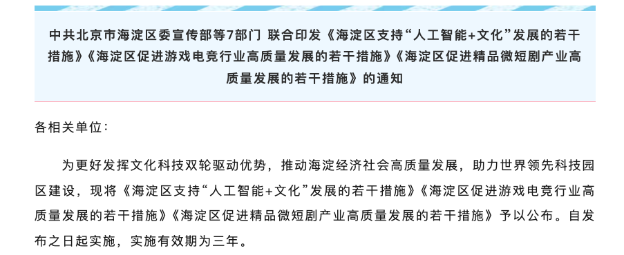 【2】日前,《海淀区促进游戏电竞行业高质量发展的若干措施》提出9条专项政策,并设立高额资金激励。根据规定,对区域内产生的精品游戏项目,最高给予2000万元奖励;对在人工智能技术应用与创新方面表现突出的企业及产业园区,奖励金额进一步提升,最高可达4000万元。